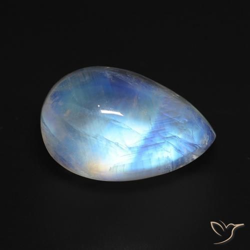 قوس قزح حجر القمر أبيض مزرق طبيعي، شكل الكمثرى، 8.44 قيراط، شفاف